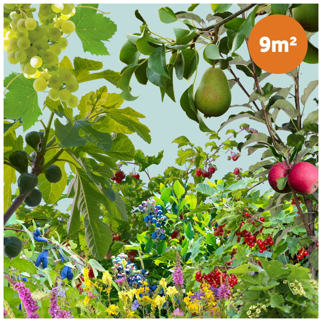 Voor alle planten geldt: ze zijn nog klein als ze bij jou aankomen maar worden snel groot als ze eenmaal zijn geplant. De appel- en perenboom zijn ongeveer 100cm bij aankomst, de fruitstruiken en vijgenboom 50cm en alle kruiden 20cm.